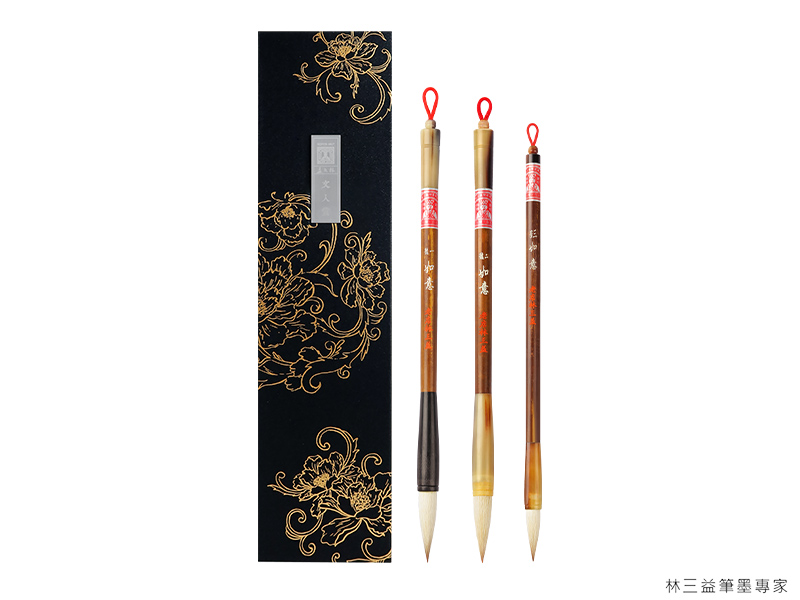 林三益的「經典如意禮筆組」,包含大、中、小三支如意筆,有三大特色: