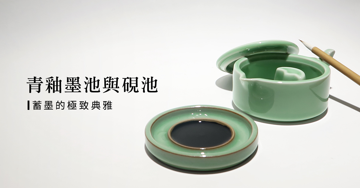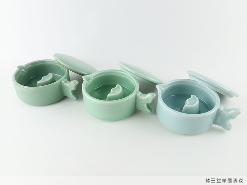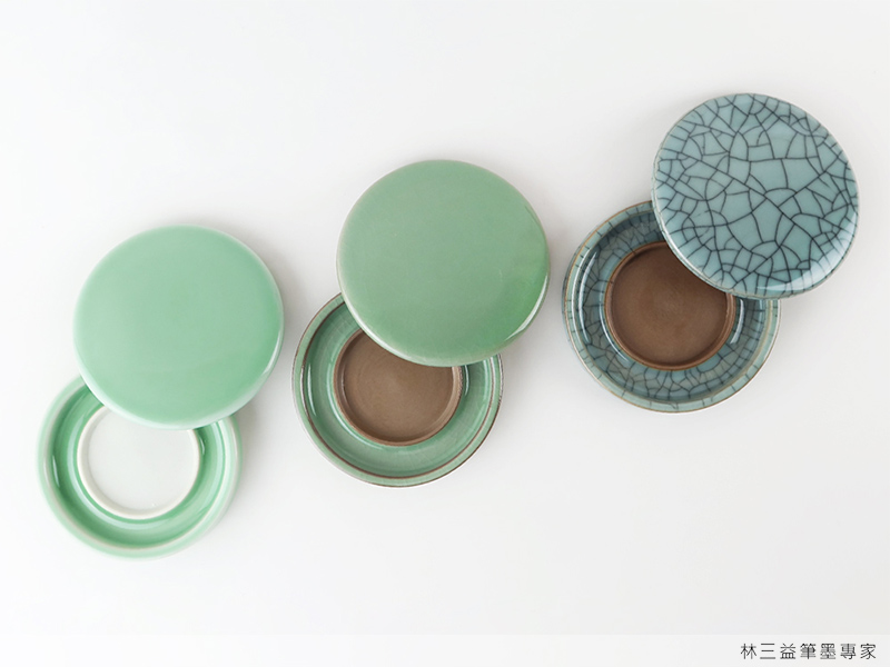 林三益的青釉墨池跟青釉硯池,有梅子青跟粉青兩色,有哥窯,也有弟窯可選擇,讓我們看看墨池跟硯池各有什麼妙用。
