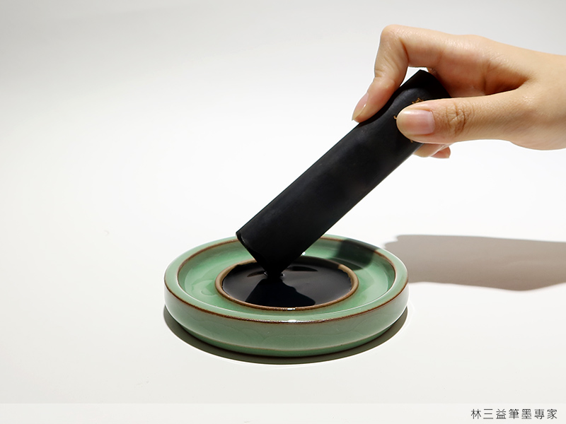 一手持墨,一手扶硯,屏氣凝神,慢磨出色,很多人喜歡磨墨時,心如止水、空靈剔透的專注感,如果場地或時間不適宜磨墨,選擇濃淡適宜的墨汁,跟一個美觀順手的墨池或硯池,一樣可以享受寫書法的樂趣,還有不同的視覺享受。
